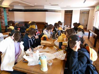 まずは腹ごしらえです。みんな美味しそうなお弁当に舌鼓を打っています。