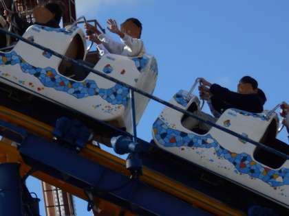 今日は比較的すいているようで、乗り物にはほとんど並ばずに乗れているようです。気に入った乗り物に何回も載っているグループがたくさんありました。