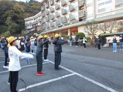 11月20日(木)です。修学旅行2日目の朝は爽快です。子どもたちは少し眠そうですが時間通りに集合して朝の集いをしています。