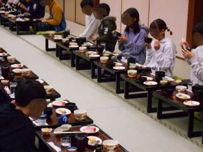 朝食の時間になりました。たくさん食べて、今日も元気に活動しましょう!