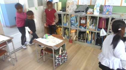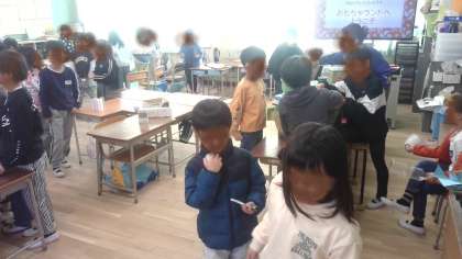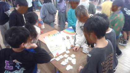 1,2年生が、生活科の学習でおもちゃランドの取り組みをしました。2年生が楽しく遊べるゲームコーナーを作って1年生を招待しました。