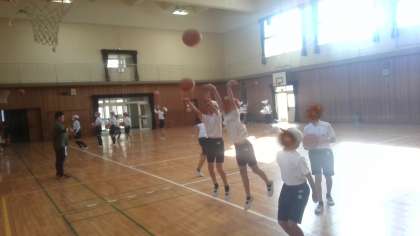 体育の学習で、バスケットボール運動をしていました。シュートの精度を上げるため、シュート練習に精を出していました。先生が示してくれたコツを頭に入れて頑張っていました。