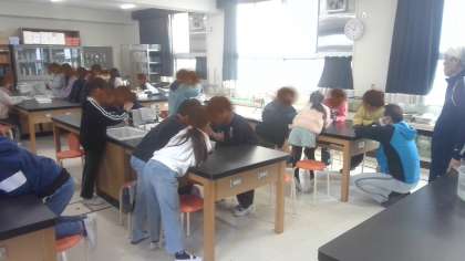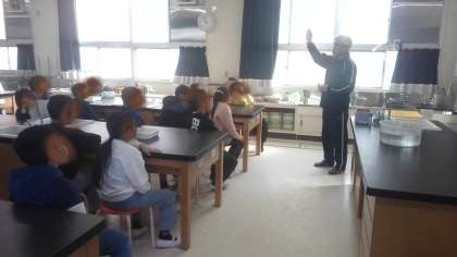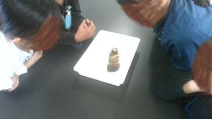 理科の学習です。空気についての学習で、10円玉をのせて蓋をした瓶をお湯で温めると10円玉がパタパタ動くことで、中の空気が膨張していることを確かめる実験でした。