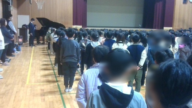 学校長から、三学期は今年度のまとめをする学期で、今年度のことを振り返ってよかった点や改善しなければならない点などをしっかりと見つめ、今年や来年度に向けて目標をもとうという話や転入生(4年生)の紹介などがありました。生活指導担当からは、冬休みの反省と今学期の生活目標についての話がありました。始業式の後、転入生と4年生との顔合わせをしていました。