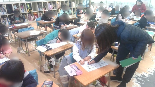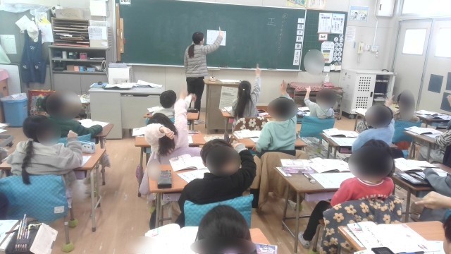 各学級とも、国語の学習で書写プリントに取り組んでいました。2学期に習った漢字をきれいに書く書写プリントでした。どの学級も一字一字丁寧に書こうと力が入っている様子の子どもたちがいました。上段が1組、中段が2組、下段が3組の様子です。