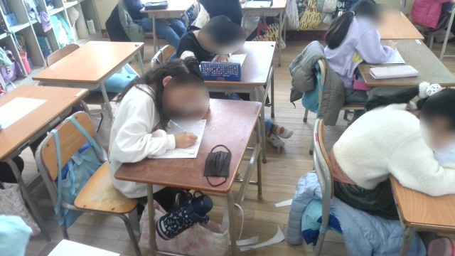 国語の学習で漢字テストに取り組んでいました。問題用紙をじっと見つめながら記憶をたどっている様子がうかがえました。がんばれ!