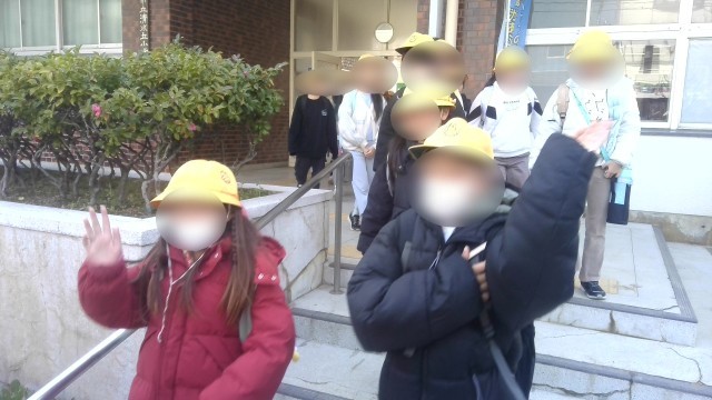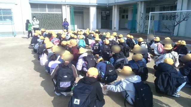 行先は阿倍野区の防災センターです。早めのお昼(お弁当)を校内で食べてからの出発でした。気を付けていってらっしゃい。