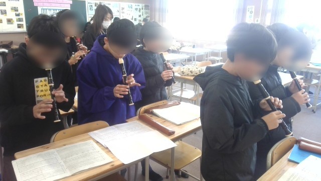 音楽の学習です。合奏の練習に熱が入っていました。パート別練習から全体合わせの段階に入ってきているようです。頑張って!