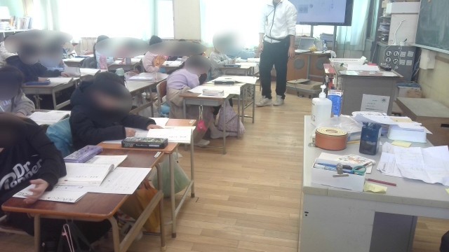 上段は1組、国語のテストに取り組んでいました、がんばれ!