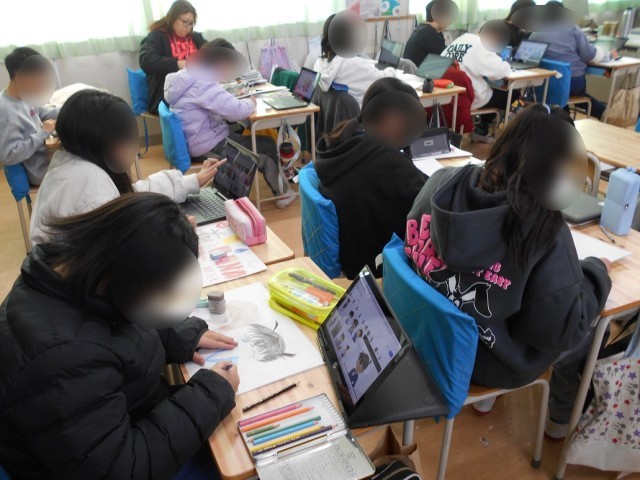 上段は手芸クラブ、下段はイラストクラブの様子です
