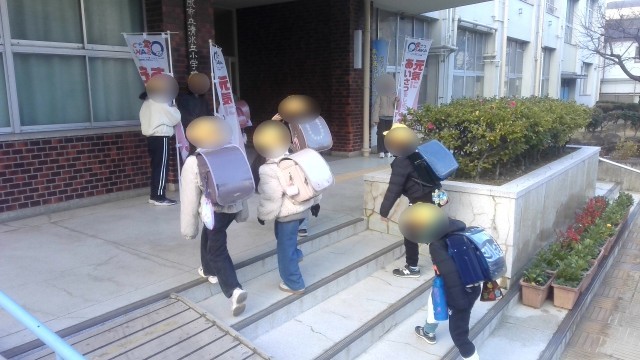 1月29日(木)です。あいさつ運動の声が響く中、子どもたちが元気に登校してきました。