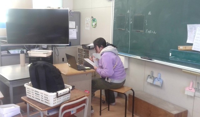 現在、本校には風邪用疾患等のため学級休業になっている学級があります。休業中の学級児童には、担任が各自のタブレットにオンラインでつながって体調の確認や学習についての話など(高学年では授業も)をしています。