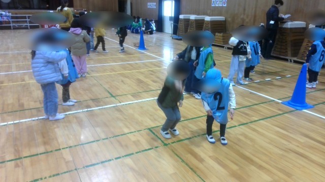 下段は、「たんなわ」コーナー、短縄を使っていろいろな技に挑戦していました。1年生と園児が一緒に跳ぶペアとびにも挑戦していました。