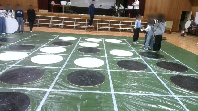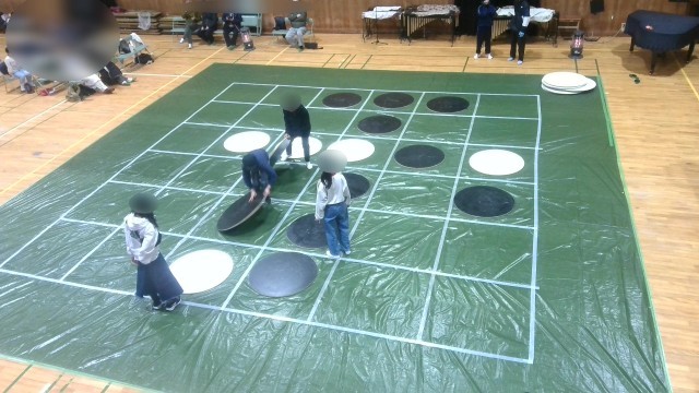 制限時間内に考えて駒を動かし、相手の駒をひっくり返すまでしなければなりません。結構大変そうでした。みんなで話し合い、作戦を練りながら進めていました。