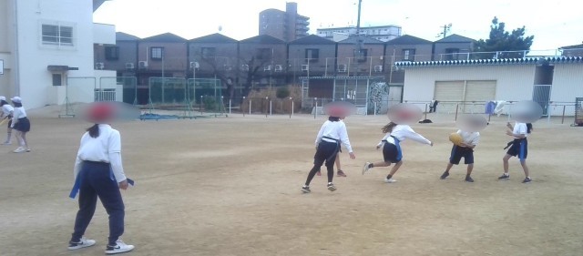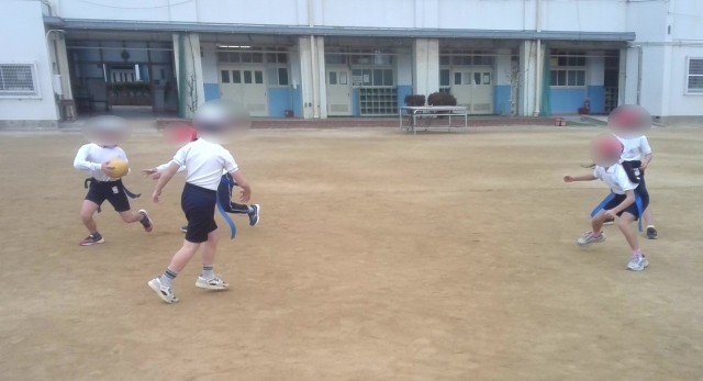 体育の学習で、タグラグビーのゲームを楽しんでいました。今日はとても寒かったですが、しっかりと体を動かして顔が紅潮するほど頑張っていました。