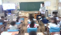 算数の学習です。時計についての学習でした。手元の学習用時計を操作しながら先生の話を聞いていました。