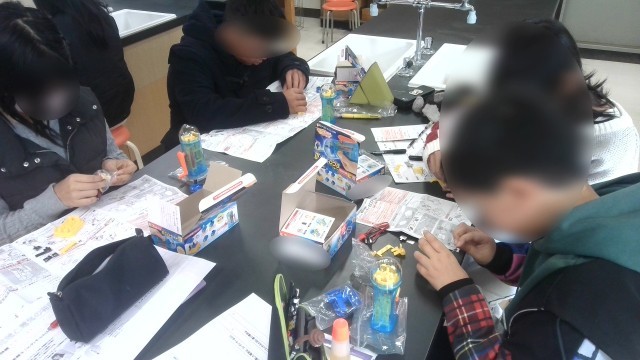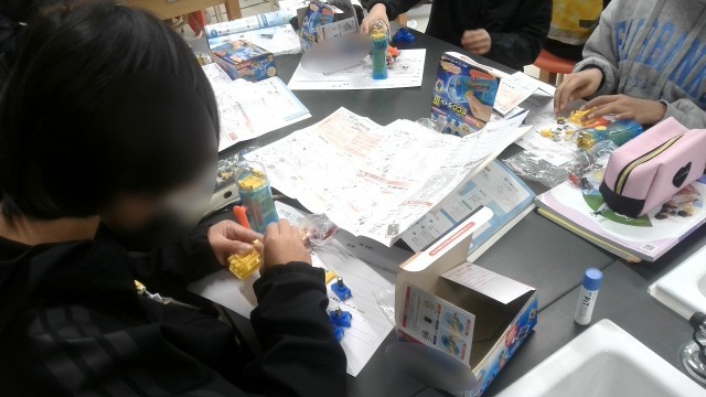 理科の学習です。電気についての学習で、実験に使うキットを作っていました。設計図を見ながら細かい部品を組み立てていく過程はなかなか根気がいるようです。