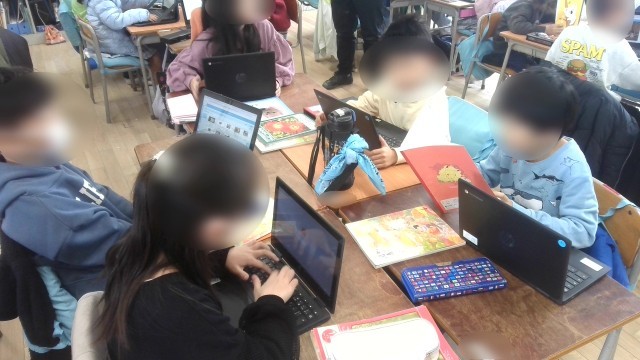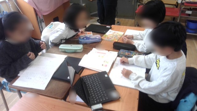 国語の学習で、「自分の宝物を発表しよう」という課題に取り組んでいました。自身の発表を班員に聞いてもらい、アドバイスをもらっていいものに仕上げていきます。宝物の写真をタブレットの発表ノートに載せ、みんなに見てもらうようにもするそうです。