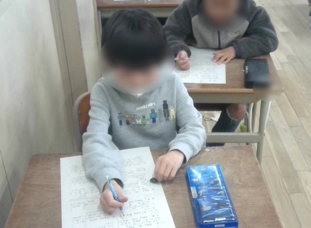 算数のテストに取り組んでいました。最初の1問は、みんなで問題文を読んでどこがヒントになるかを考えてから取り組んでいました。頑張って!