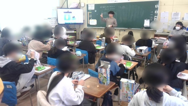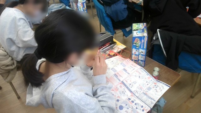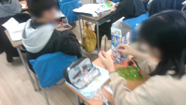理科の学習です。電磁石の学習で、導線の巻く数の違う二つの電磁石を用意して比べる実験をします。その実験に使用する電磁石や回路などを作っていました。