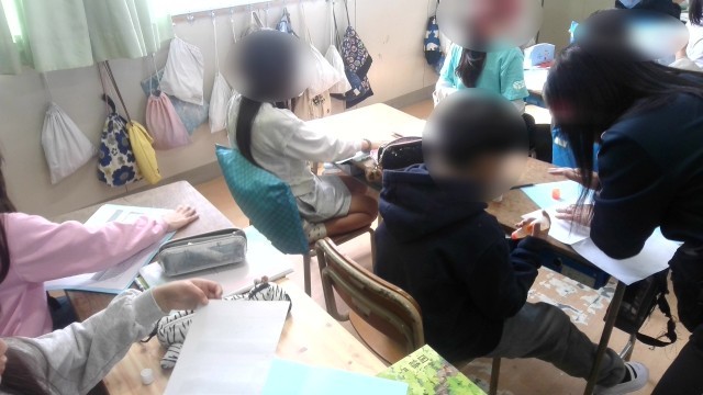 国語の学習です。これからの授業や宿題などの時に使う音読カードを作っていました。ほぼ毎日、また長く使っていくものなので、丁寧に作っていました。