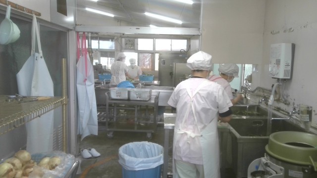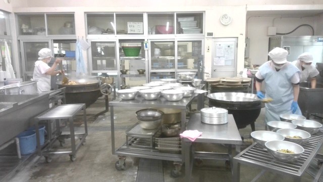 今日から給食が始まります。調理工程や時間配分など細かく定められている中、約600人分の給食を4人の調理員さんが力を合わせてつくってくれています。とても大変な作業だと思います。調理員さん、ありがとうございます。今年度もおいしい給食をよろしくお願いします。