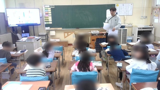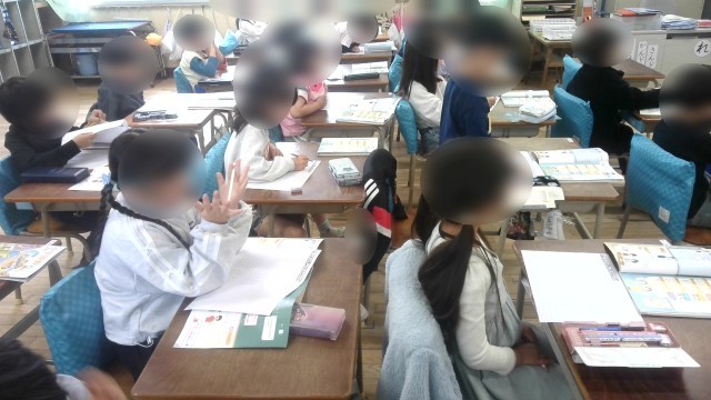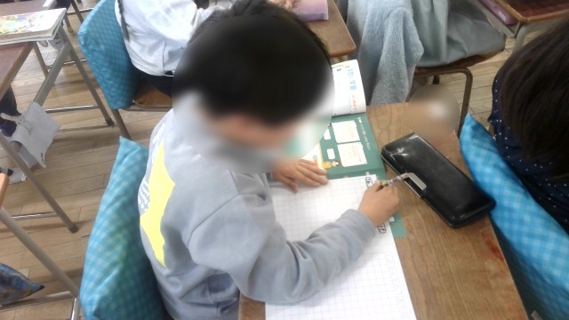 算数の学習です。算数の学習でのノートの書き方を練習します。1年生の時より書く量が増えるのでまとめる方法も違ってくるようです。まずは、全員がワークシートに沿って書き方を練習していきます。