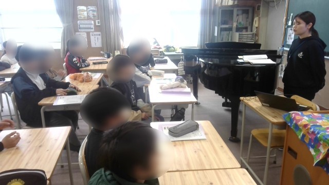 音楽の学習です。5年生になっての初めての音楽の時間だったので、担当の先生の自己紹介や音楽学習についてのお話を聞いていました。