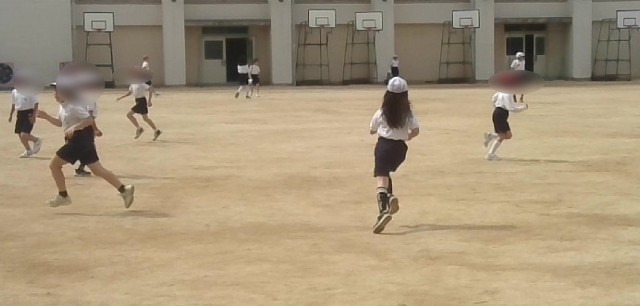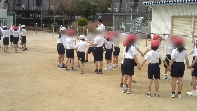 体育の学習です。ラジオ体操と鬼ごっこでしっかりと準備う運動をした後、輪を使って巧みな動きの学習をしました。何人かで手をつないで環になっているところに輪を入れ、つないだ手を切らなように輪を移動させていきます。全身をうまく使って輪を移動させていくことが大切です。
