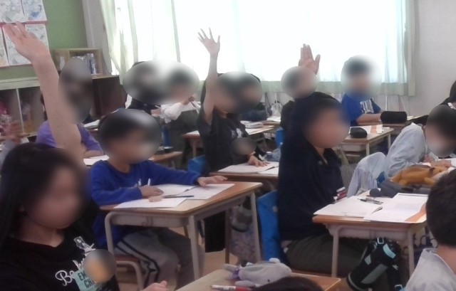 国語の学習で、物語文の読み取りをしていました。「サボテンの花」に出てくるサボテンと風の考え方の対比をしていました。サボテンと風のそれぞれの考え方が表れている文を見つけ、その違いについて議論していました。