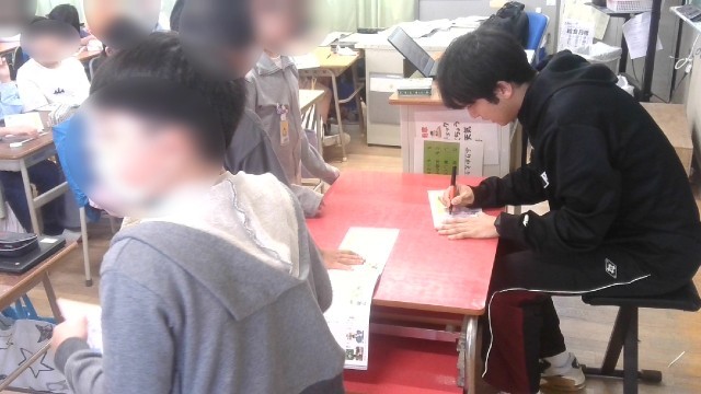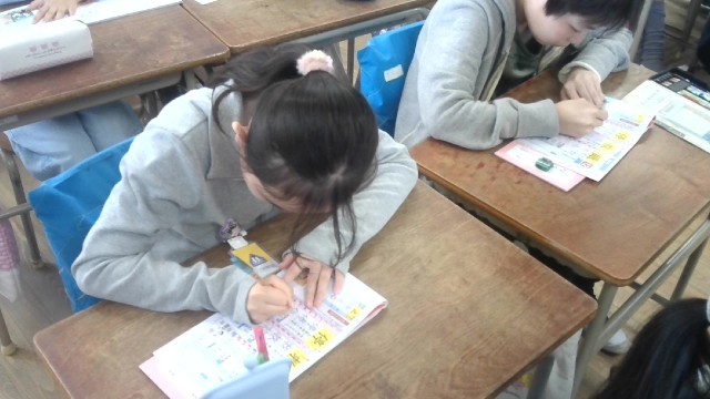 書き順を確かめた後、漢字ドリルを使って練習をしていました。できたら、先生に添削をしてもらっていました。