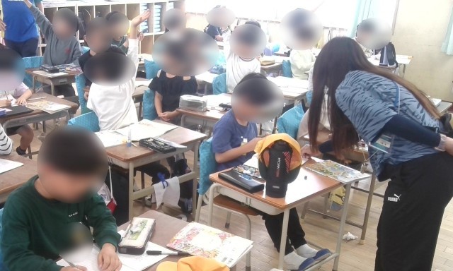 算数の学習です。「34円のガムと25円のあめを買います。あわせて何円になりますか?」という問題に取り組んでいました。「問題文の中で大切な言葉はどれでしょう」との先生の問いかけに「34円」、「25円」、「あわせて」という言葉があがってきました。それらの言葉から「34+25」という式がたちました。