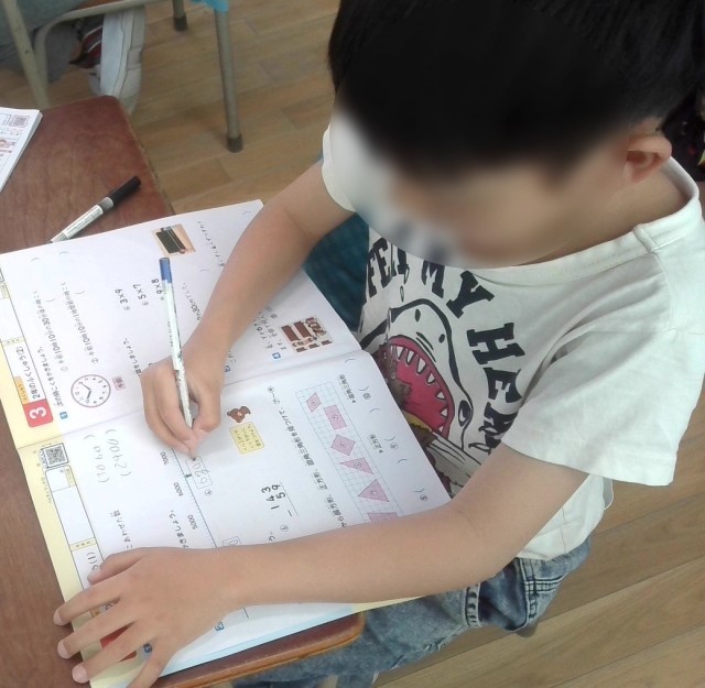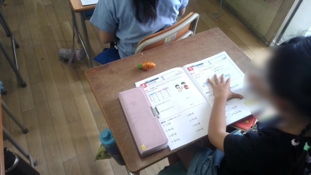 算数の学習です。算数ノートを使って2年生の復習をしていました。全部できたらみんなで答え合わせをしていきます。