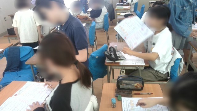算数の学習でした。線対称についてのまとめの学習で、算数ノートに取り組んでいました。互いに教え合いをしながら問題を解いていました。