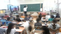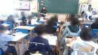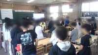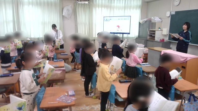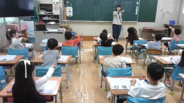 3学級とも国語の学習をしていました。上段の1組と下段の3組はひらがなの学習です。書き順に気をつけて丁寧に練習していました。中段の2組は音読です。先生の範読に続いて大きな声で読んでいました。