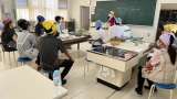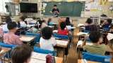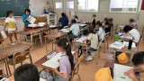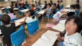 上段は5年生、2・3組は多目的室を使っています。下段は6年生、一所懸命ですが、...