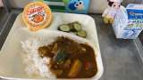 1学期最後の給食は、夏野菜のカレーライス、きゅうりのサラダ、みかんゼリー、牛乳...