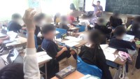 5年生の様子です。 算数の学習でした。立体の体積を求める課題で、単なる直方体や立...