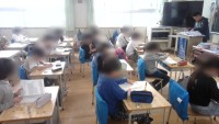 4年生の様子です。 算数の学習で、大きい数のまとめのプリントをしていました。めい...