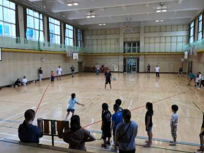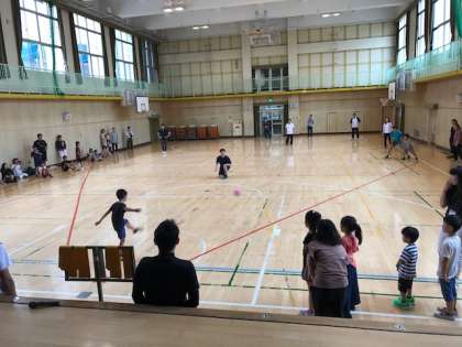 日曜参観の午後、体育館でPTA主催の「ふれあいスポーツ大会」が開催されました。種目は「キックベースボール」で、子ども対先生、保護者対先生、大人対子どもなどの試合が行われました。試合に出ていない間は、応援したり、いいプレーに拍手をしたりと和やかな雰囲気でした。ご参加くださったみなさま、ありがとうございました。