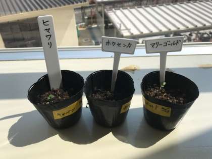 ひまわりやマリーゴールドは芽を出したのですがホウセンカだけは、もうすこしかかりそうです。「早く芽を出せホウセンカ」
