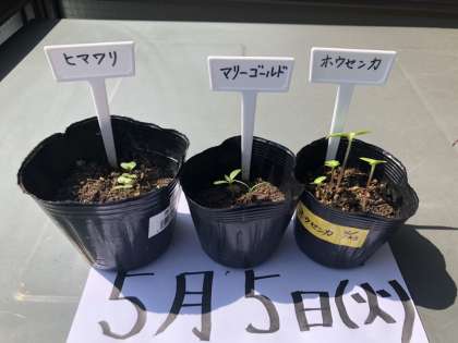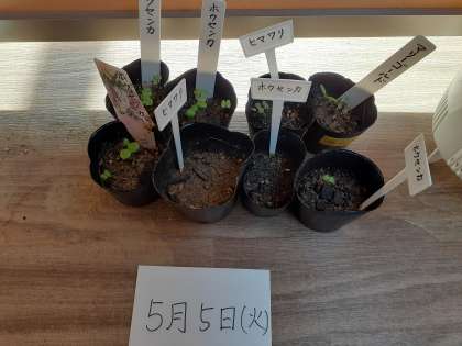 5月5日はこどもの日、皆さんが元気にすくすくと育っていくように、種たちもすくすくと育っています。がんばれ。