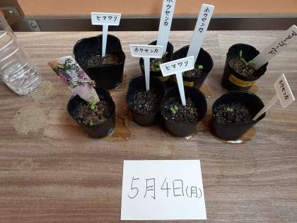 天気はどんより曇り空でも、種たちは元気よく育っていますよ。