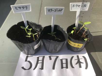 ゴールデンウィークも終わり、米のとぎ汁をあげ続けた結果、種たちが目覚ましいほど成長を遂げ、特にホウセンカは日に日に高くなってきています。皆さんも米のとぎ汁をぜひ挙げてはいかがですか。