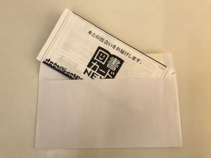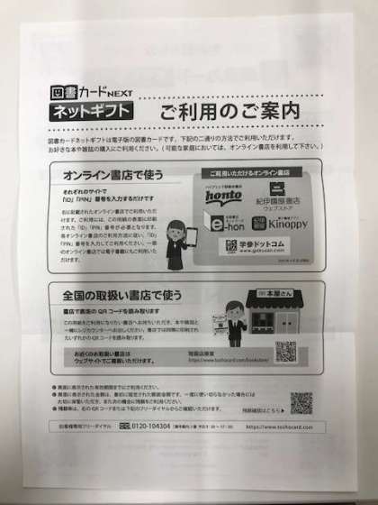 明日からの登校日にお渡しする大阪府教育委員会からの「図書カード」については、カードという名称ですが、実物は写真のようなプリント(A4判)状のものが3つ折りで白い封筒に入っております。利用案内の裏面がそのまま図書カードになっておりますので、誤って処分されないよう、ご注意ください。