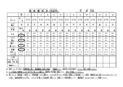 明日以降の登校日には、どの学年も必ず健康観察表に毎日の体温や体調などを記入し、保護者の方がサインをしていただき、お子さまに持たせてください。お忙しいとは思いますが、ご協力くださいますようお願いいたします。なお、新しいものがお手元にない場合は、下記よりダウンロードしていただくこともできます。