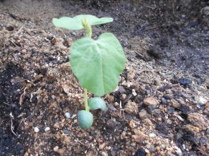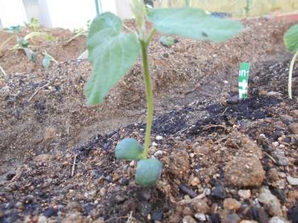 エダマメの なえです。大きなはっぱと 小さなはっぱが ありますね。