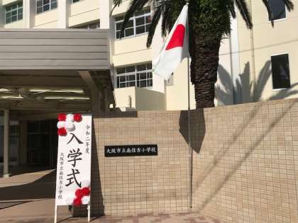 式場内には、6年生が作ってくれたあじさいの花を飾り、新入生を迎えました。式では、校長先生のお話のあと、1年間の行事や学校が再開されてからの1年生の学校生活の紹介をしました。運動場では、密を避けるために3つ設けた入学式の立て看板で多くの方が記念写真を取られていました。