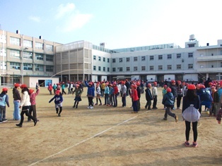 子どもたちは、低学年高学年に分かれて、なわとび大会と防災についての学習を行いました。