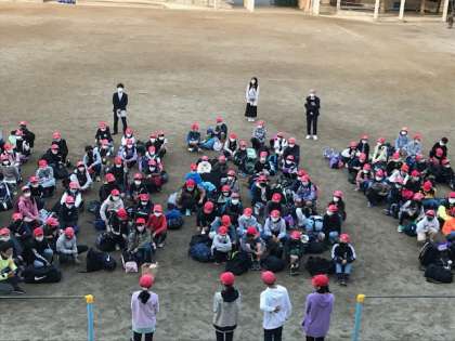 出発集会の後、子どもたちを乗せたバスは、予定通りに学校を出発しました。